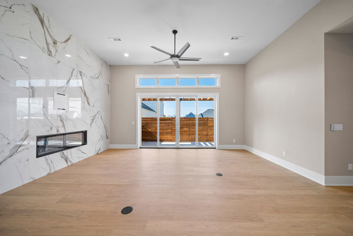 Linear Electric Fireplace in the living room with accent wall (plans vary)