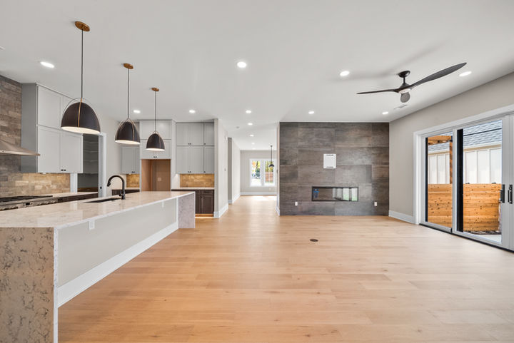 Linear Electric Fireplace in the living room with accent wall (plans vary)